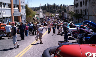 The combination of fine old cars lined up along streets filled with historic buildings was great. I like the Corvette's, the Mustangs and the '56 era Ford and Chevy trucks.